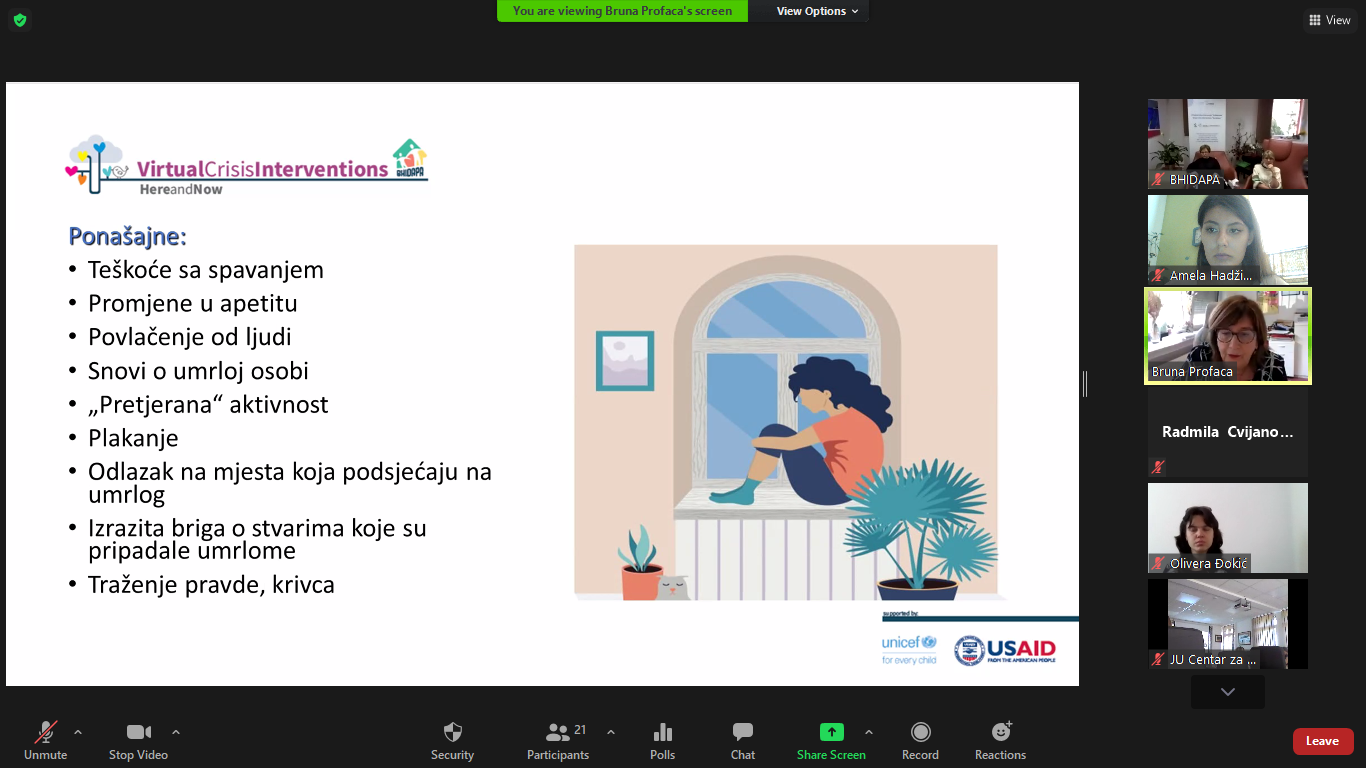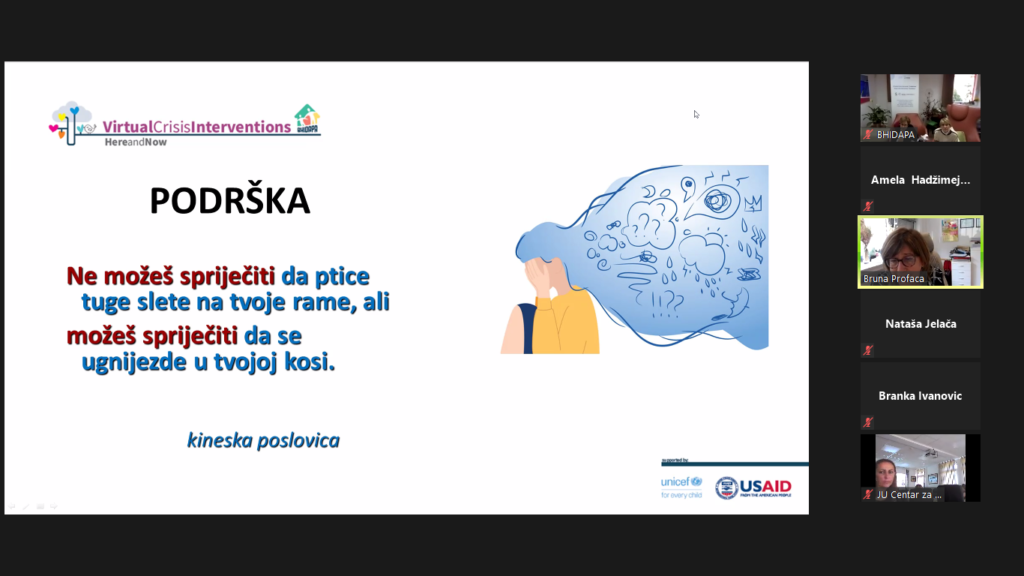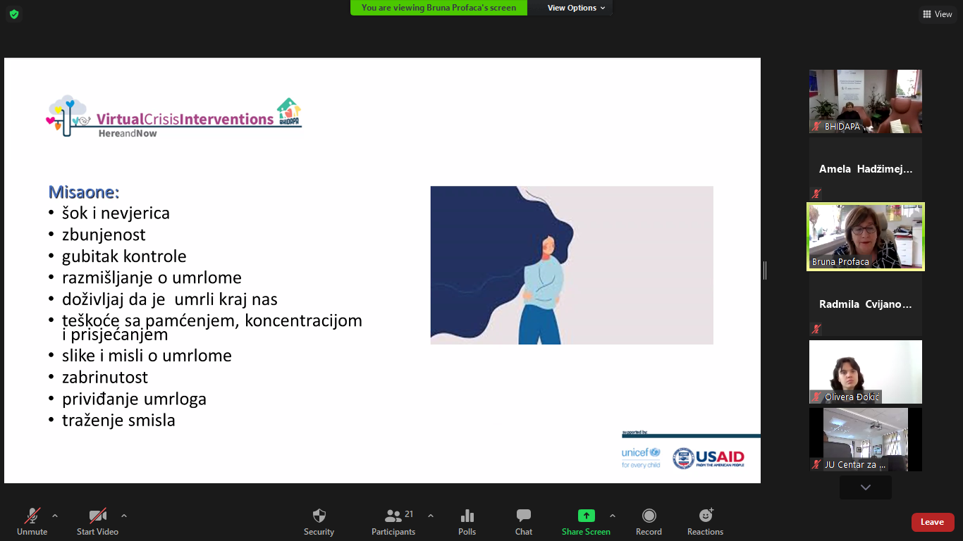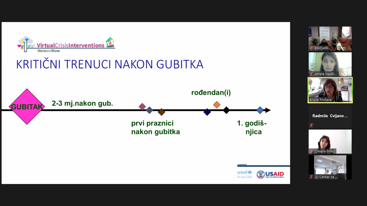The module on the topic “Loss and grief” within the education of the Virtual Crisis Intervention Here & Now, was held by our dear doc.dr.sc. Bruno Profaca, clinical psychologist from the Polyclinic for the Protection of Children and Youth of the City of Zagreb.