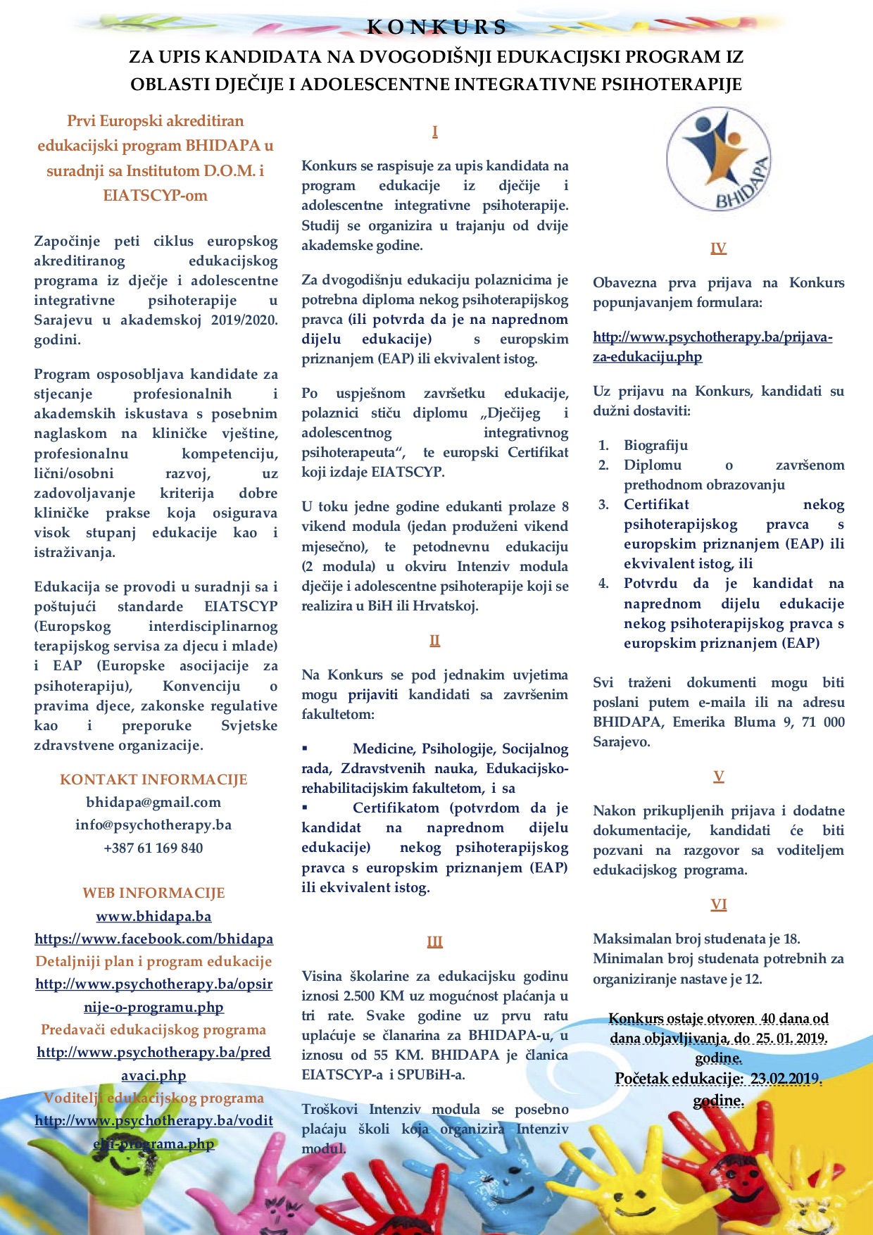 Competition for enrollment of candidates in a two-year educational program in the field of child and adolescent integrative psychotherapy