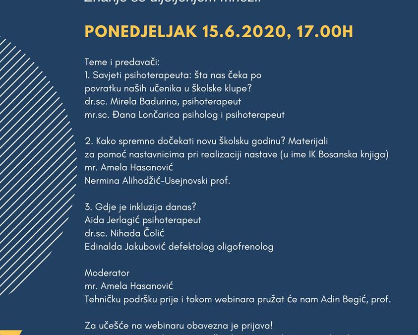 Hvala učiteljima i učiteljicama na aktivnom učešću i veliko hvala organizatoru ovog webinara Bosanskoj Knjizi i Udruženju učitelja Kantona Sarajevo, na pozivu!