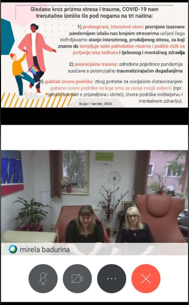 Predavanje na temu “Šta možemo očekivati po povratku naših učenika u školske klupe?” održale su kolegice iz našeg Centra dr.sc. Mirela Badurina, psihoterapeut i mr.sc. Đana Lončarica, psihoterapeut.