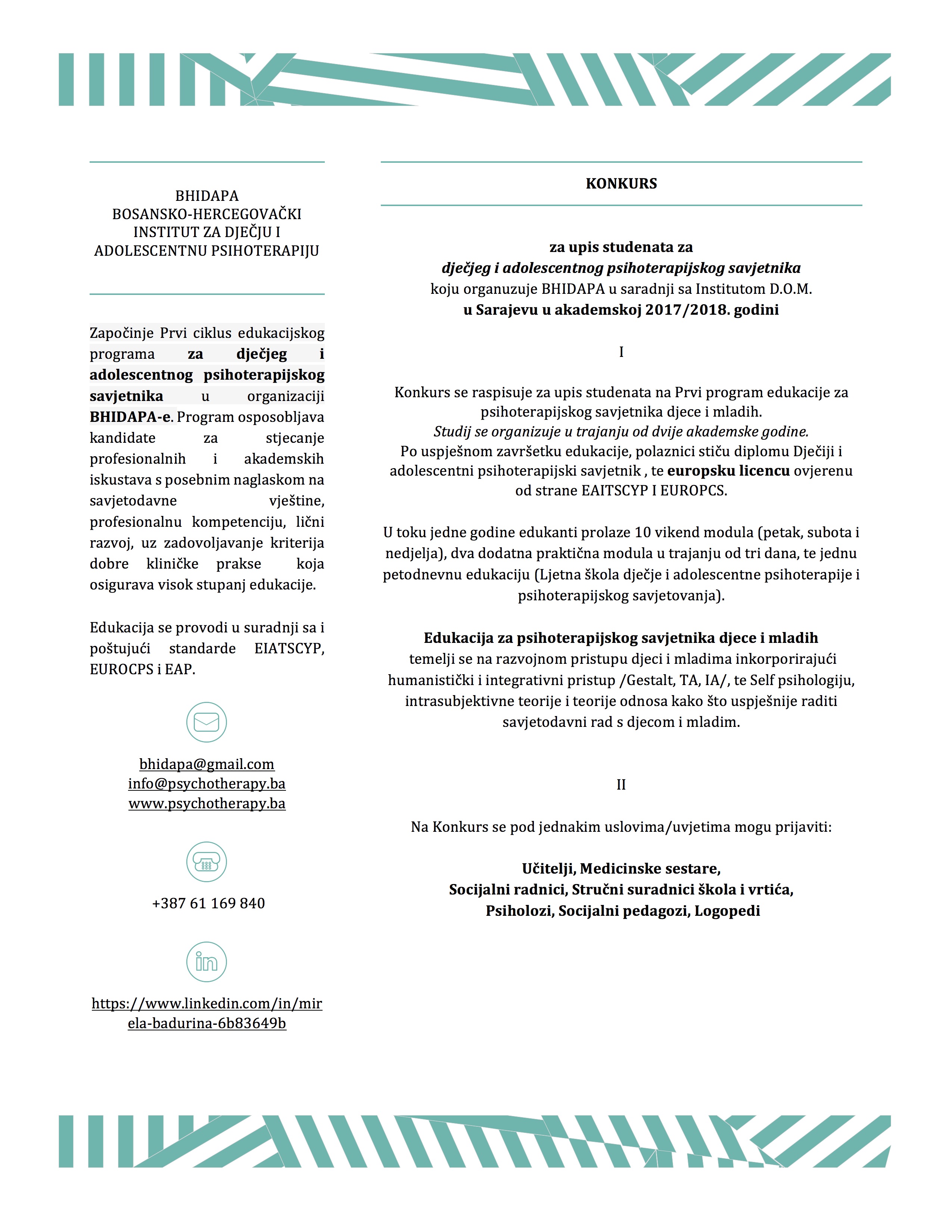 Odsjek za Integrativnu psihoterapiju djece i adolescenata