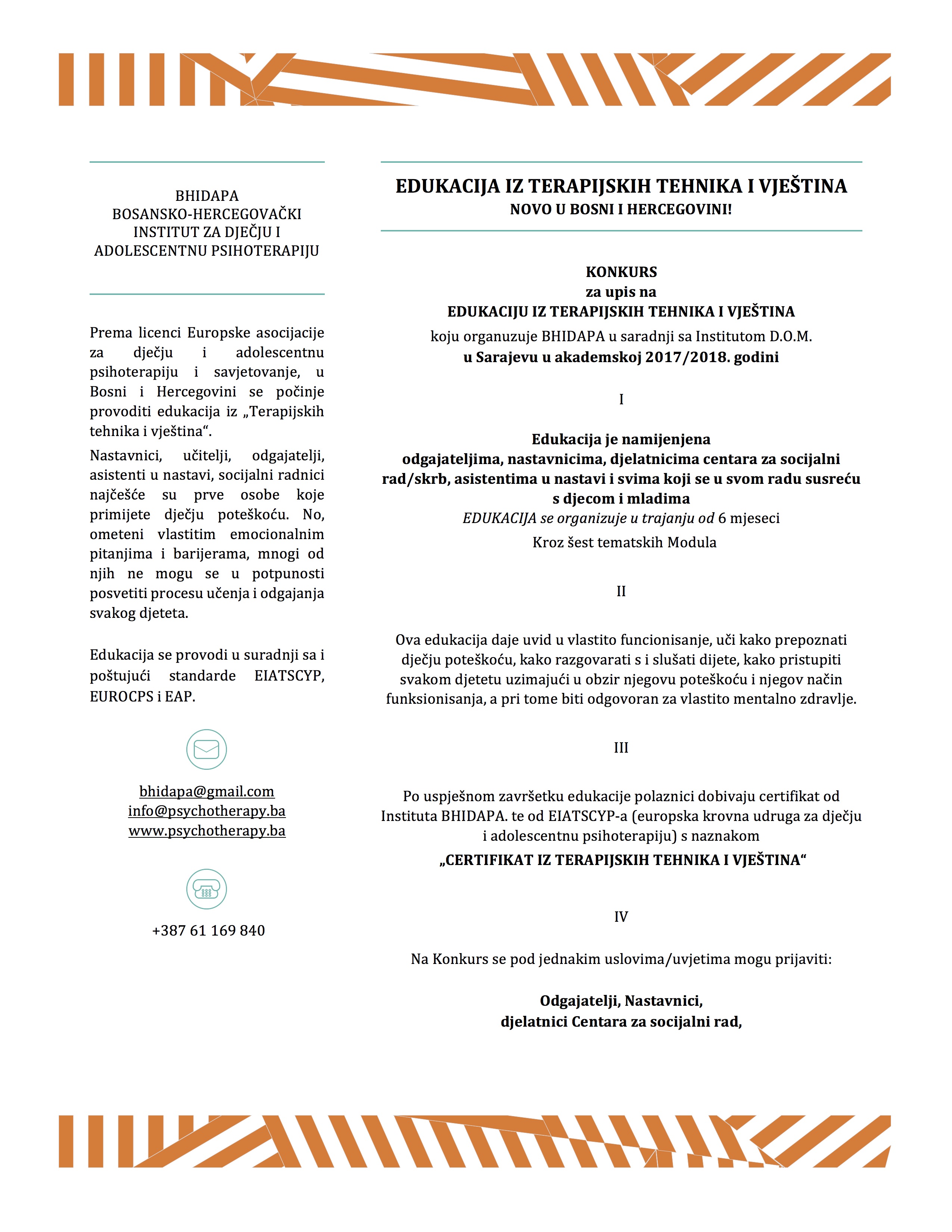 Certifikat iz terapijskih tehnika i vještina u radu sa djecom