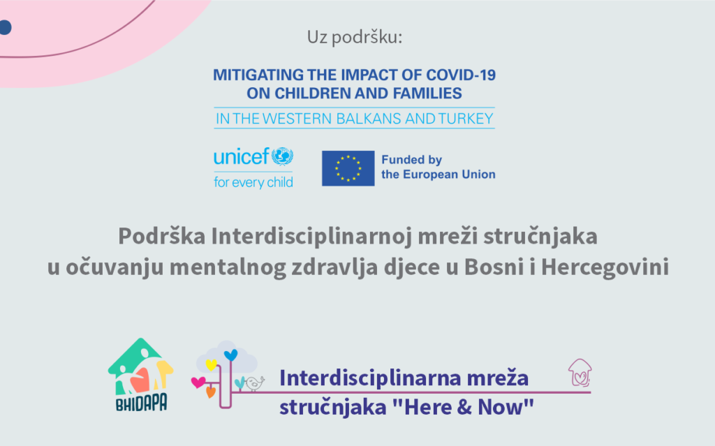 Projekat Interdisciplinarna mreža stručnjaka „Ovdje&Sada“ u saradnji sa UNICEF-om, uz podršku EU-a i uz saglasnost nadležnih ministarstava, nastavlja sa svojim edukacijama-treninzima sa primarnim ciljem jačanja kapaciteta rezilijentnosti zajednice u očuvanju mentalnog zdravlja djece u Bosni i Hercegovini.