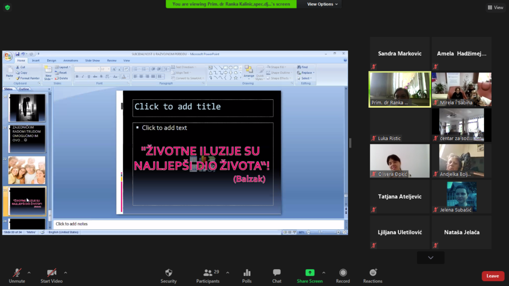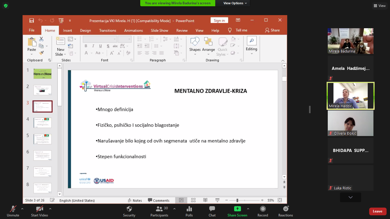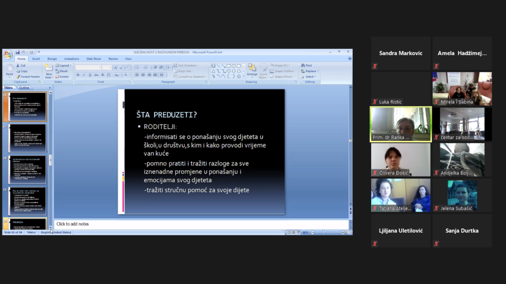 Pored teorijskog dijela, modul je obuhvatio i vježbe u grupama na unaprijed osmišljenim prikazima slučajeva, kao i mogućnost međusobnog dijeljenja iskustava.
