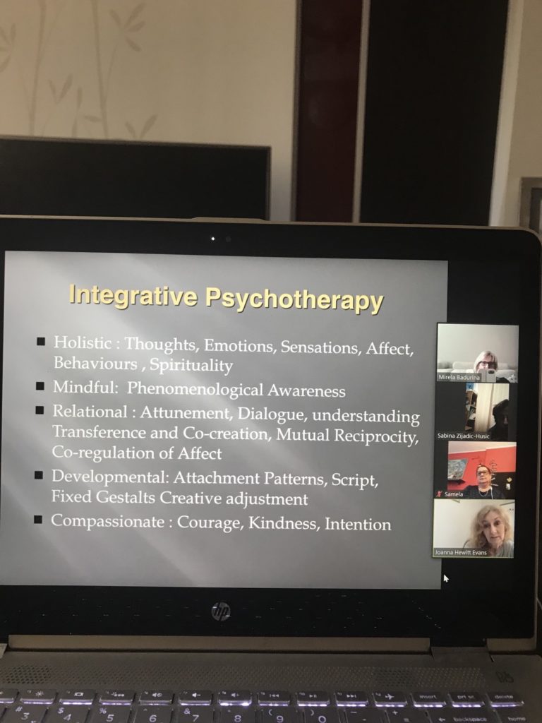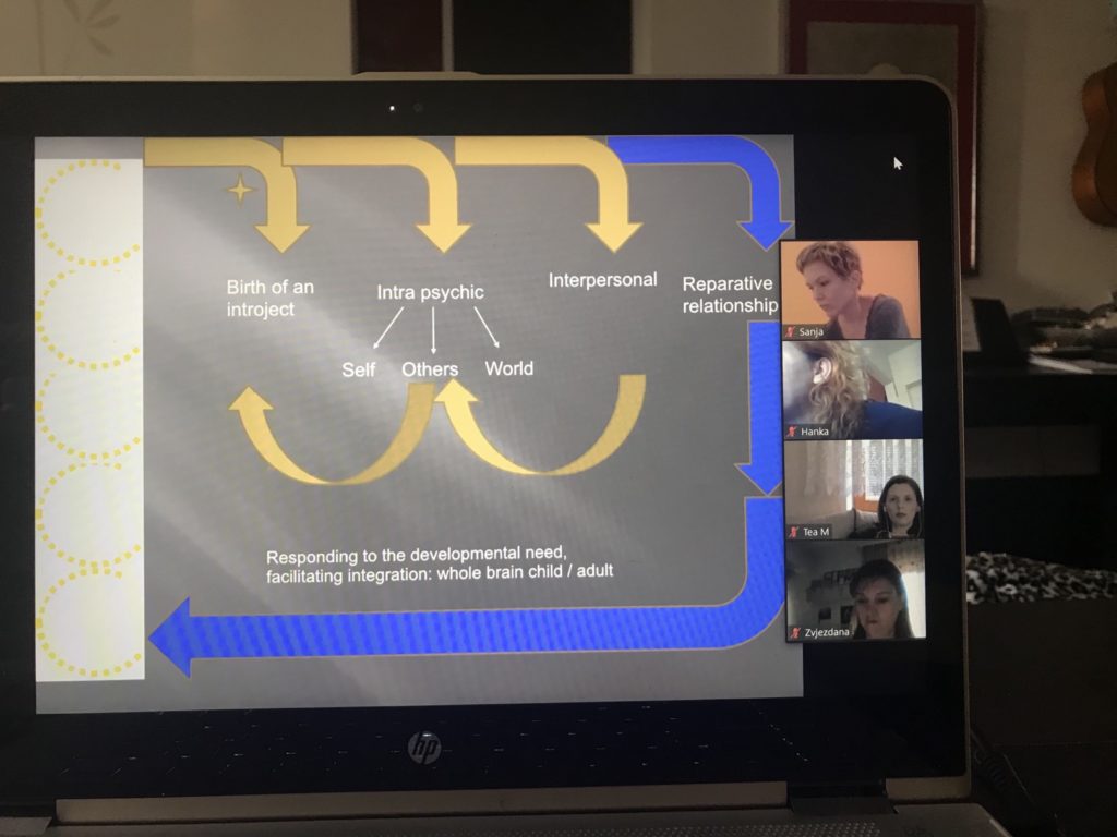 U protekla tri dana od 17. 4. – 19.4. tema modula bila je “Diagnosis and Interventions in Integrative Psychotherapy through Theory of the Self” i edukanti su kroz teorijski i praktični dio modula učili o primjeni modaliteta Selfa u tretmanu djece, mladih i odraslih, od vrsnog integrativnog psihoterapeuta, trenera i supervizora MrS Joanne Hewitt Evans iz UK-a.