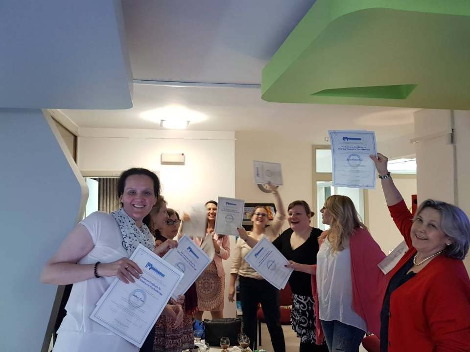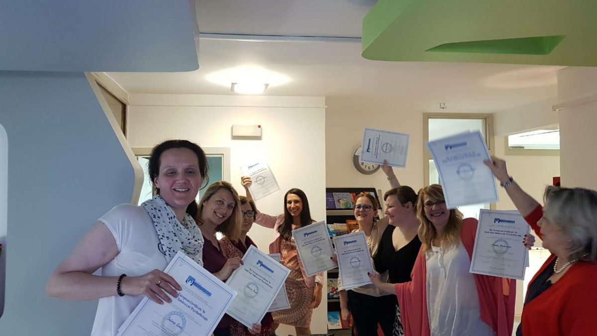 Prof. dr. med. sc. Kocijan Hercigonja, predsjedica EIATSCYP-a zajedno sa dr. sc. Badurina, direktoricom BHIDAPA dr, uručile Europske certifikate za dječjeg i adolescentnog integrativnog psihoterapeuta kolegicama koje su diplomirale u 30. septembra 2017. godine.