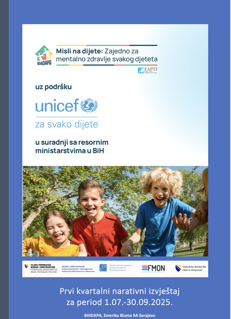 Sa zadovoljstvom i zahvalnošću dijelimo ključne rezultate prvog kvartala implementacije projekta (1.7–30.9.2025.), koji BHIDAPA realizuje u partnerstvu s UNICEF-om, uz podršku Evropske unije i Zajedničkog švicarsko-UN programa i u saradnji sa resornim ministarstvima Bosni i Hercegovini.