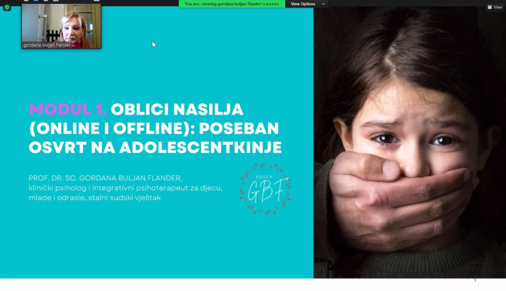 Modul su vodile naše drage evropski akreditovani treneri prof. dr. sc. Gordana Buljan Flander, klin. psiholog, psihoterapeut, trener i sudski vještak za zlostavljanu i zanemarenu djecu i dipl. i Dr. sc. Mirela Badurina, geštalt i integrativni psihoterapeut, integrativni psihoterapeut za djecu i adolescente, trener, mentor i supervizor