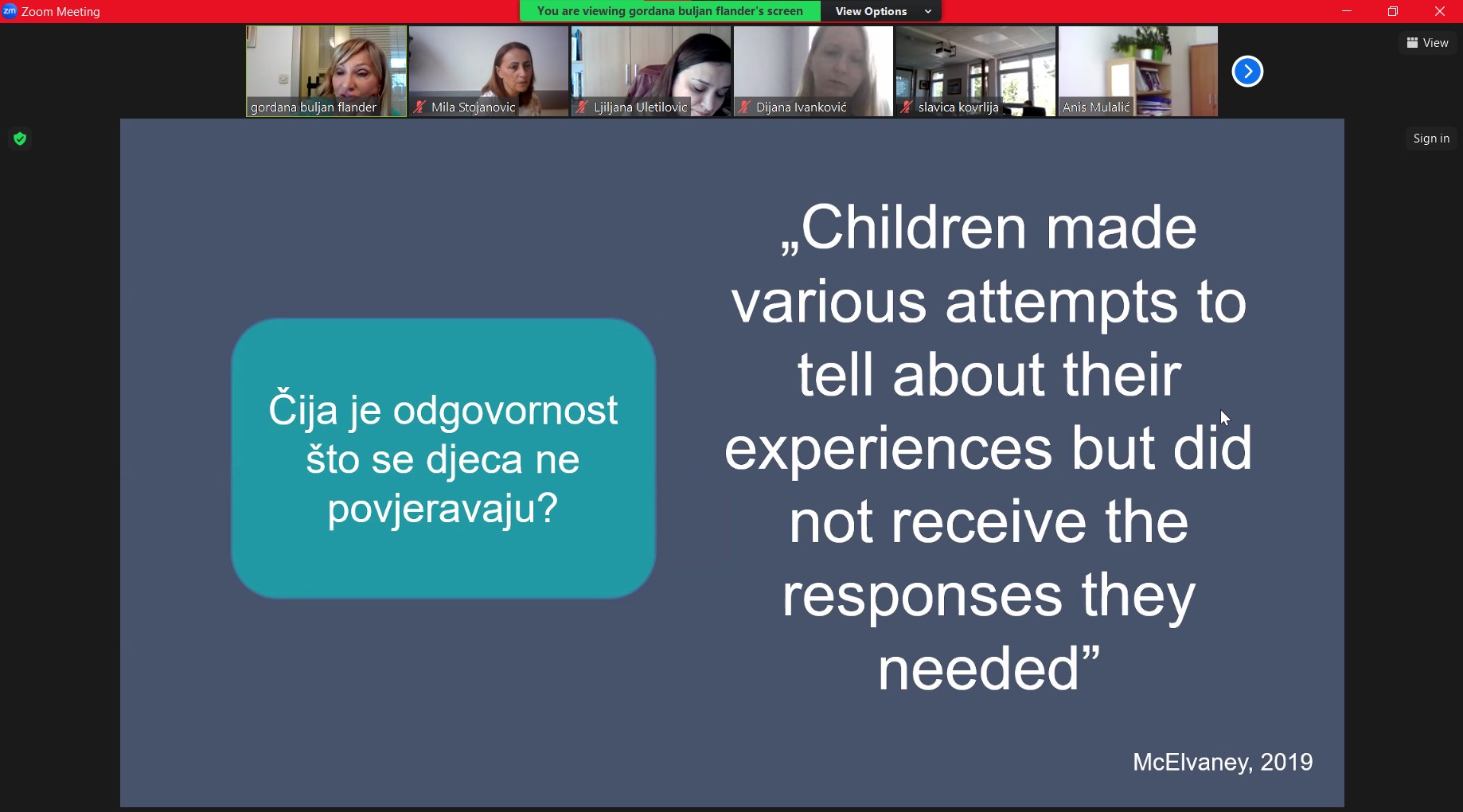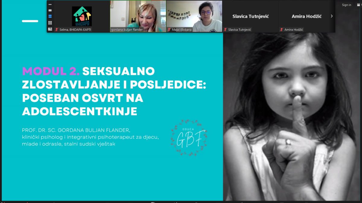 Modul su vodile naše drage, evropski akreditovani treneri – prof. dr. sc. Gordana Buljan Flander, klin. psiholog, psihoterapeut, trener i sudski vještak za zlostavljanu i zanemarenu djecu i Dr. sc. Mirela Badurina, geštalt i integrativni psihoterapeut, integrativni psihoterapeut za djecu i adolescente, trener, mentor i supervizor