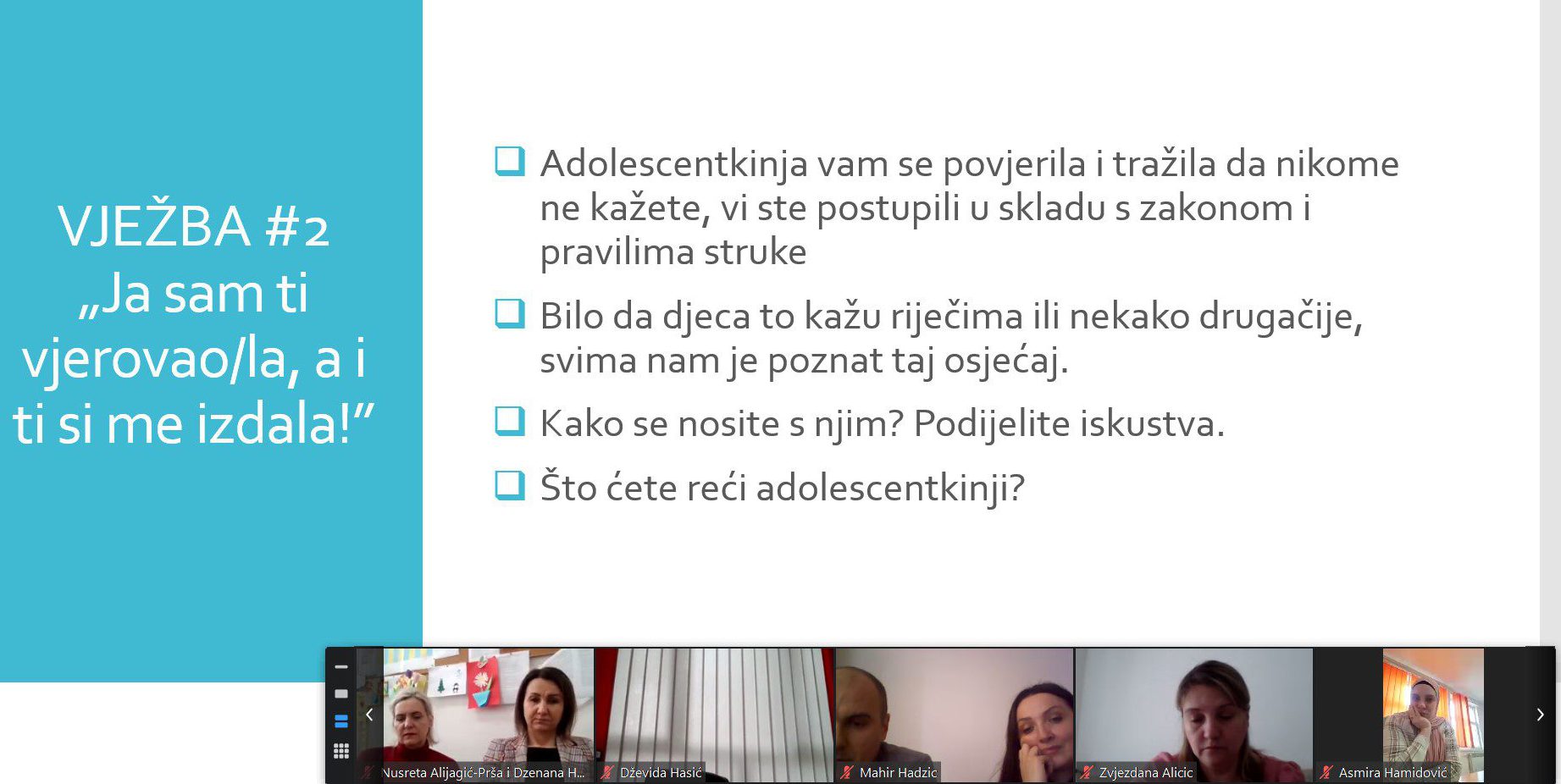 U petak 2.2.2024. godine održan je i drugi modul na temu „Seksualno zlostavljanje i posljedice: poseban osvrt na adolescentkinje“ u sklopu petog ciklusa projekta Interdisciplinarna mreža stučnjaka “Ovdje & Sada”: Zaštitimo Adolescentkinje, fokusirana na preventivne psihosocijalne aktivnosti i intervencije u tretmanu adolescentkinja koje su preživjele zlostavljanje sa fokusom na seksualno zlostavljanje.