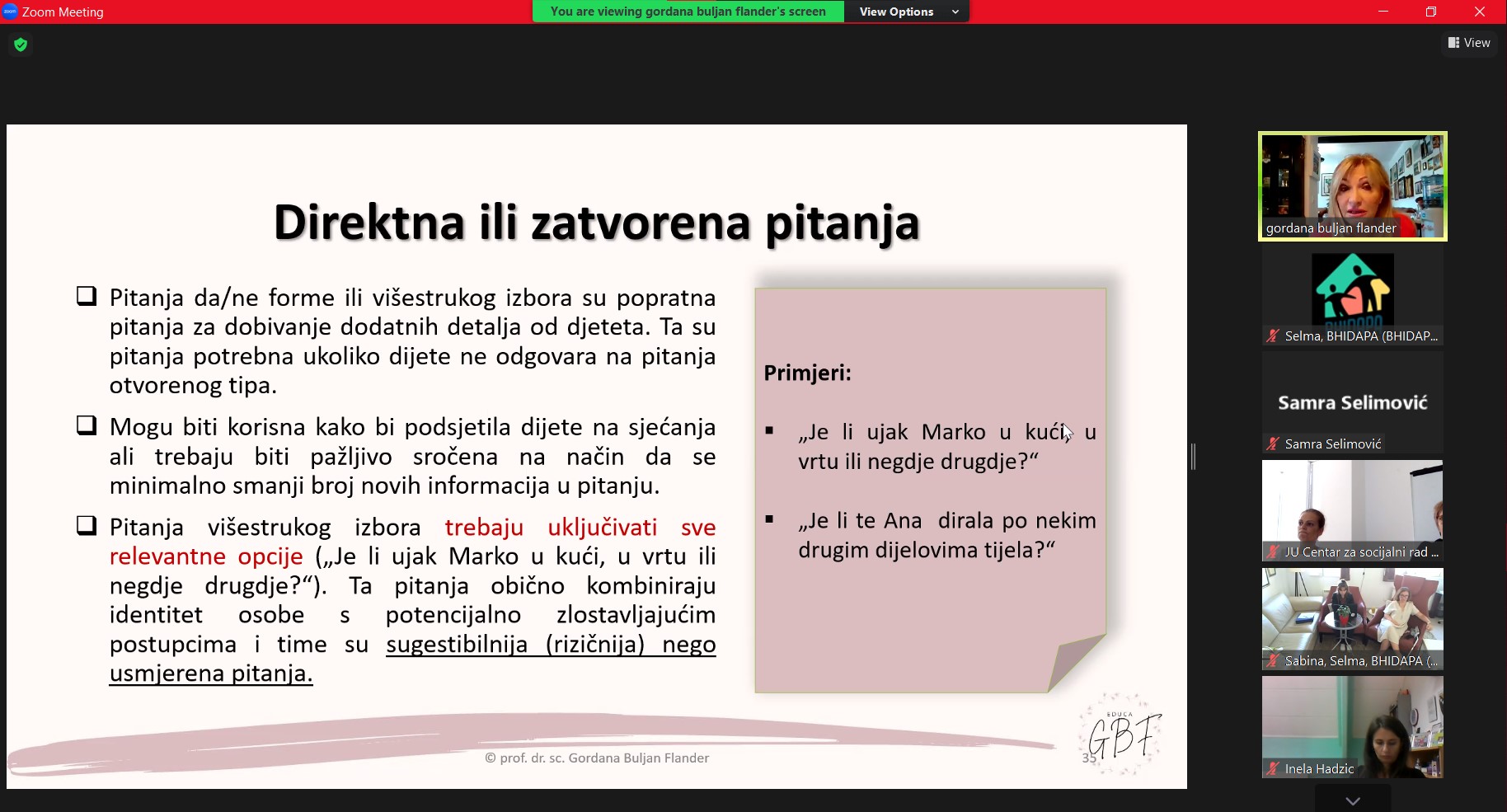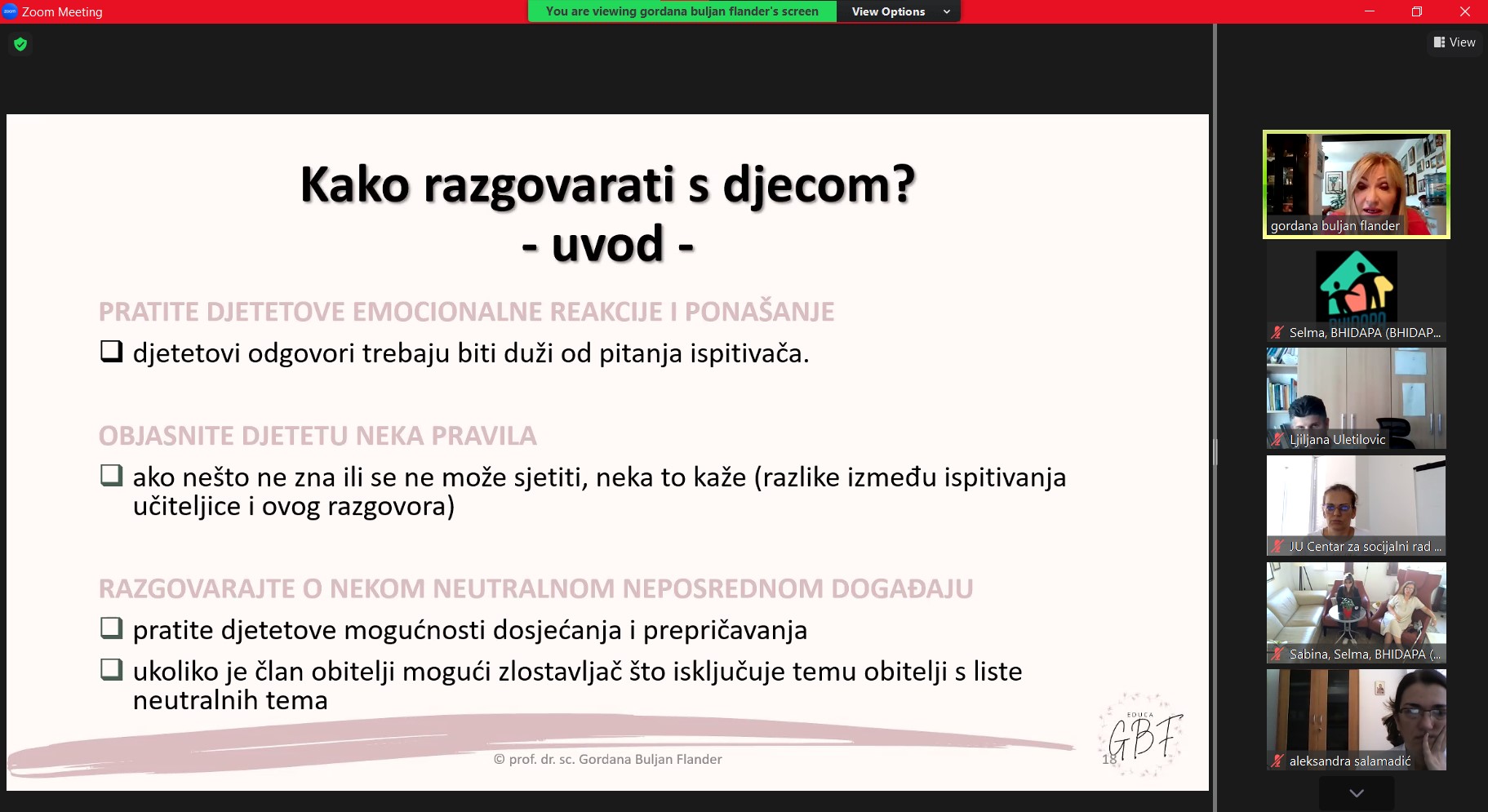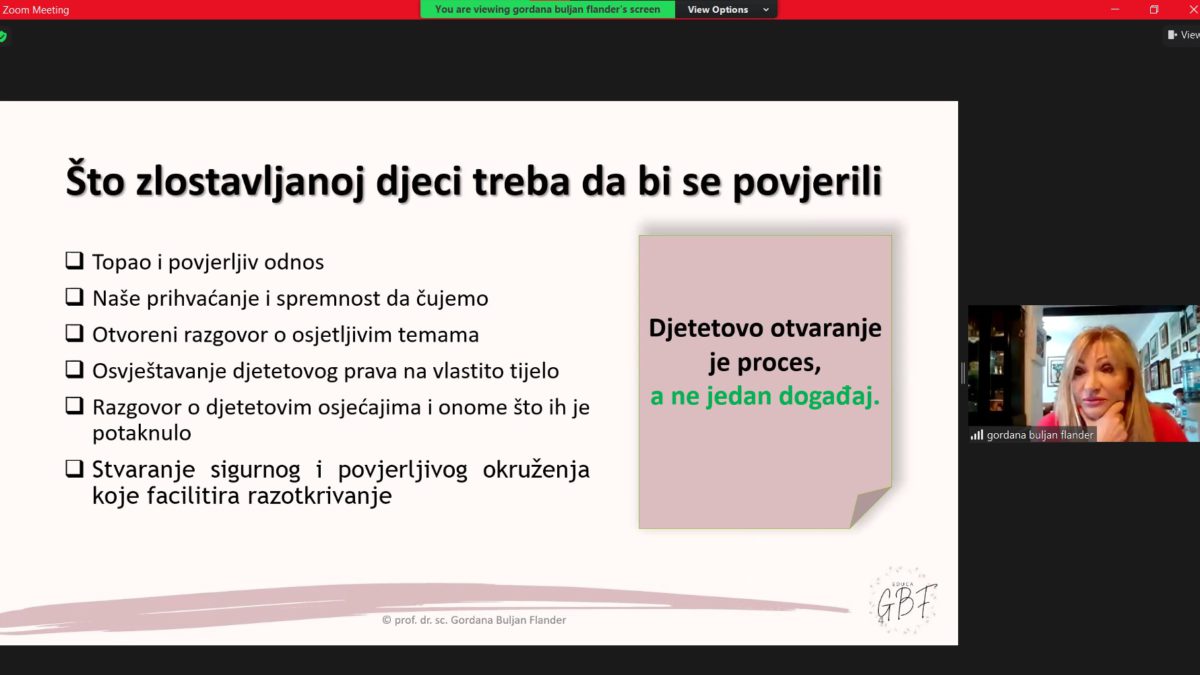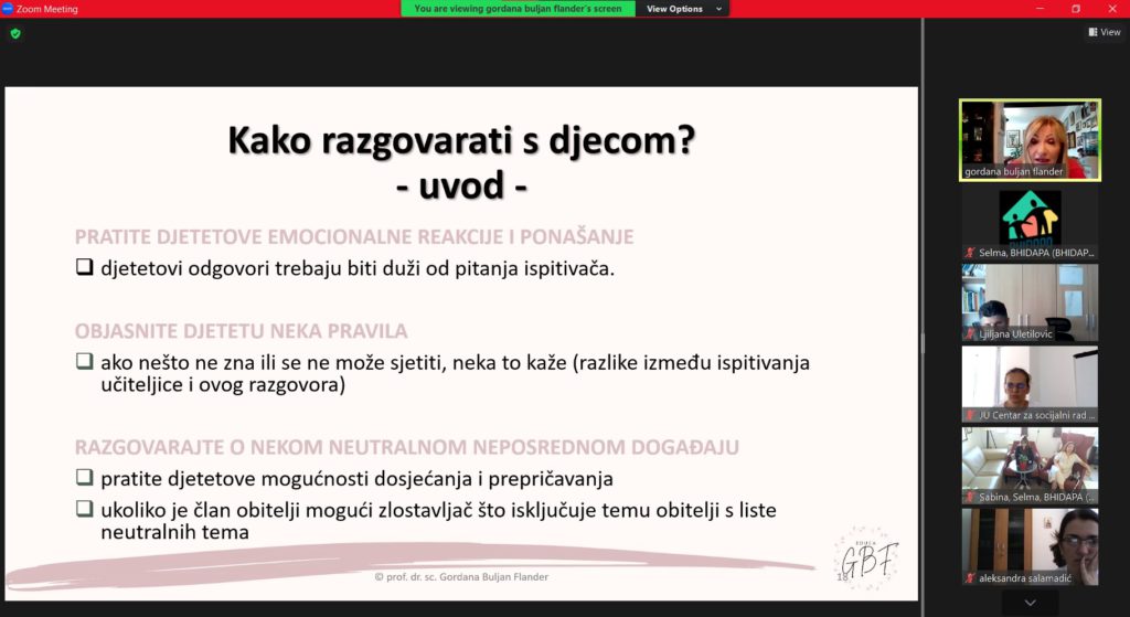 Modul su vodile naše drage, evropski akreditovani treneri – prof. dr. sc. Gordana Buljan  Flander, klin. psiholog, psihoterapeut, trener i sudski vještak za zlostavljanu i zanemarenu djecu i dipl. psiholog Sabina Zijadić-Husić, psihoterapeut, trener i supervizor