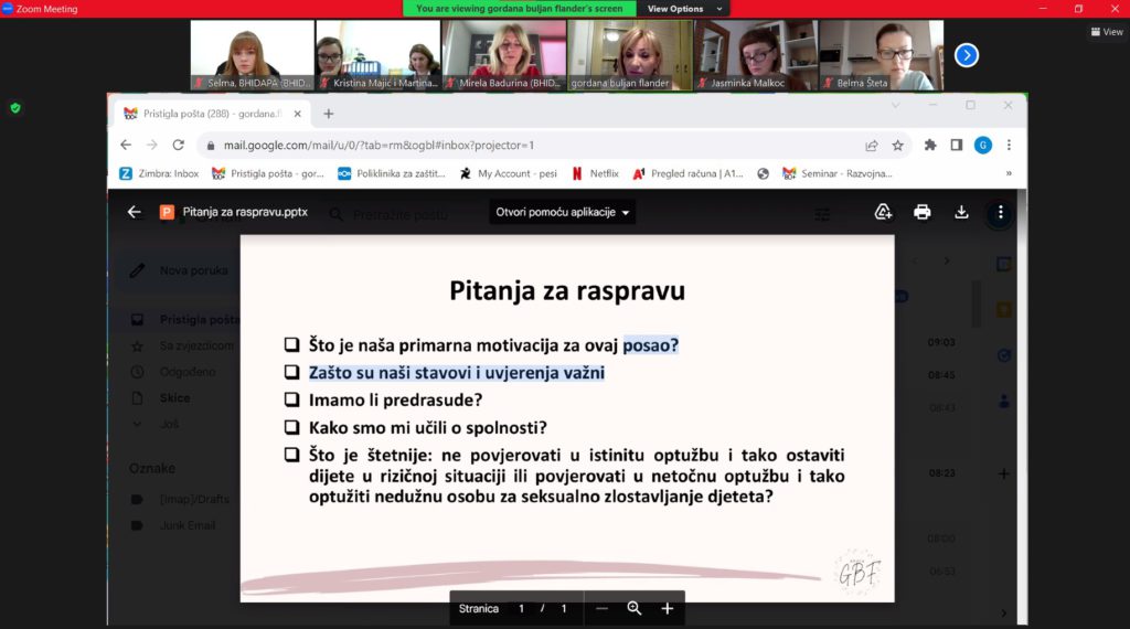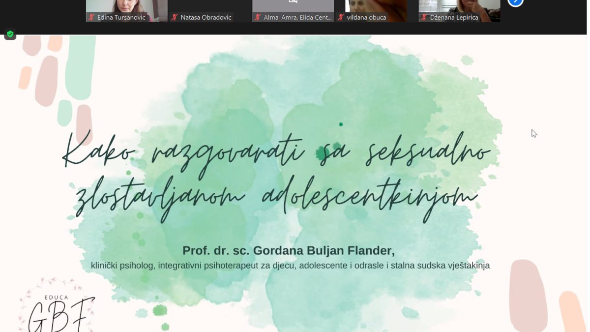 U petak 27.10.2023. godine održan je i treći modul na temu „Klinički intervju kako razgovarati sa seksualno zlostavljanom adolescentkinjom“ u sklopu četvrtog ciklusa projekta Interdisciplinarna mreža stučnjaka “Ovdje & Sada”: Zaštitimo Adolescentkinje, fokusirana na preventivne psihosocijalne aktivnosti i intervencije u tretmanu adolescentkinja koje su preživjele zlostavljanje sa fokusom na seksualno zlostavljanje.