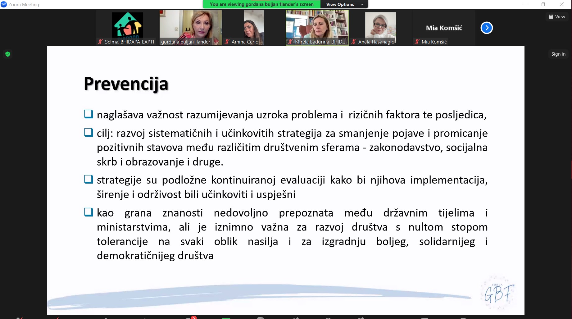 I na posljednjem modulu ovog ciklusa, stručnjaci su pokazali značajnu zainteresovanost za temu postavljajući pitanja, dajući prijedloge te tražeći pomoć vezano sa njihove lične, ali i profesionalne dileme. Učesnici su imali priliku da stečeno znanje na svim modulima predoče kroz rad u malim grupama u sklopu kreiranja nacrta preventivnih programa i da na velikoj grupi podijele vrlo značajne i originalne ideje usmjerene na preventivne programe.