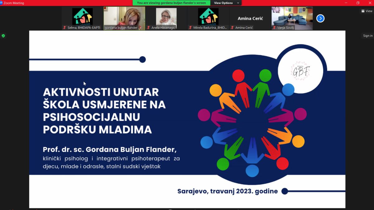 Modul su vodile naše drage, evropski akreditovani treneri – prof. dr. sc. Gordana Buljan Flander, klin. psiholog, psihoterapeut, trener i sudski vještak za zlostavljanu i zanemarenu djecu, – Dr. sc. Mirela Badurina, geštalt i integrativni psihoterapeut, integrativni psihoterapeut za djecu i adolescente, trener, mentor i supervizor, te naša asistentica projekta, Karasoftić Selma, uz čiju podršku su moduli besprijekorno realizovani.