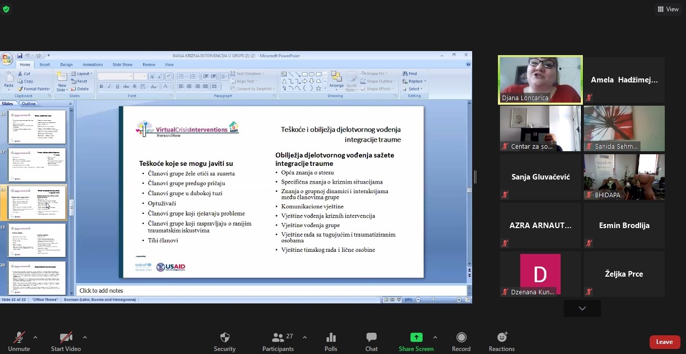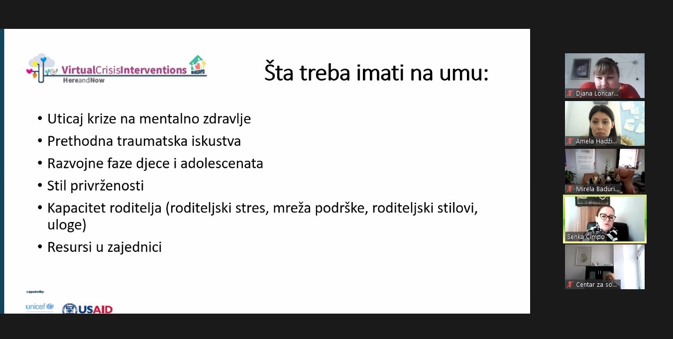 ovom modulu ,poseban fokus je bio na online kriznim intervencijama i grupama koje se rade online. Također obuhvaćen je rad
