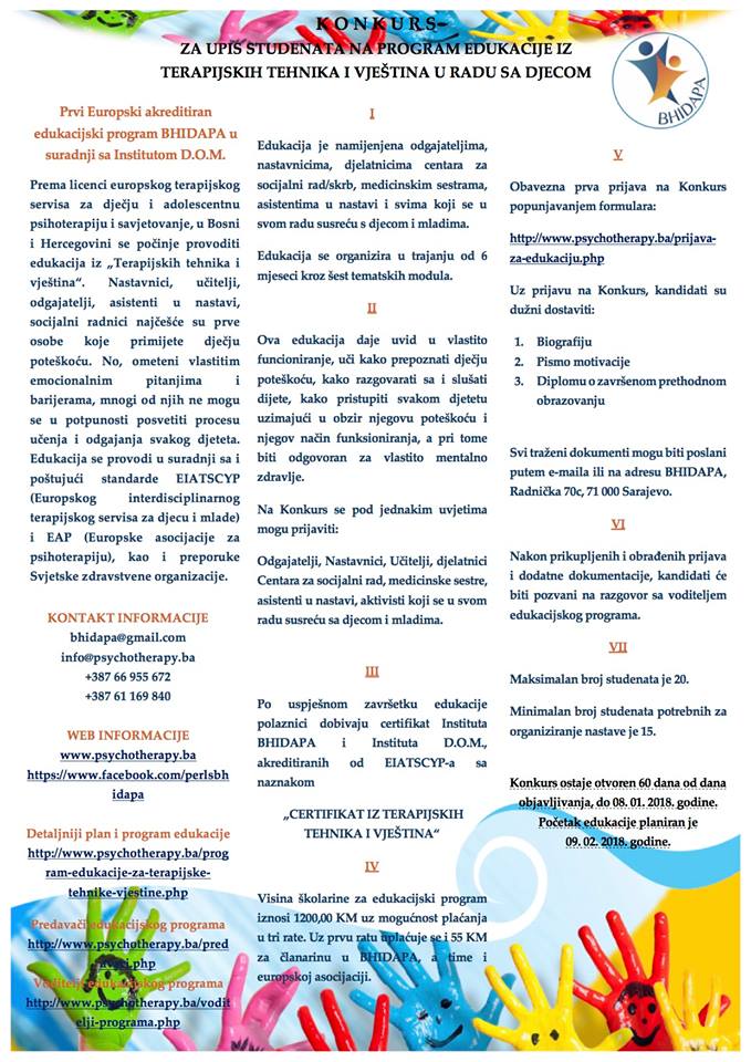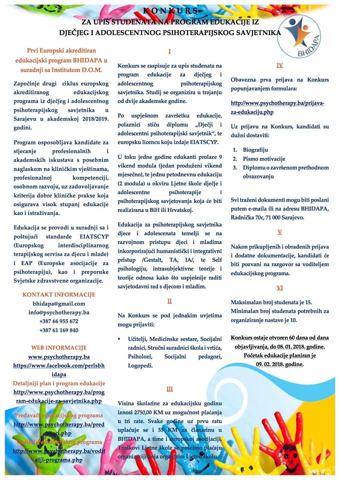 Zbog povećanog interesa za europski akreditovane edukacijske programe u organizaciji BHIDAPA, raspisuju se konkursi za upis kandidata na sljedeće edukacijske programe: