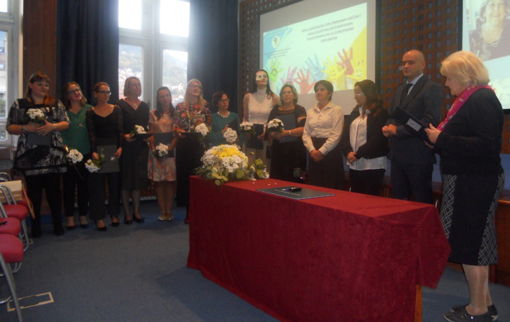 U septembru 2017. godine naša država dobiva devet europski licenciranih dječjih i adolescentnih integrativnih psihoterapeuta koji su uspješno zadovoljili sve uslove edukacijskog programa prema europskim propozicijama, te uspješnim polaganjem završnog ispita pred tročlanom komisijom u sastavu Prof. dr. med. sci. Dubravka Kocijan-Hercigonja, neuropsihijatar i psihoterapeut za djecu i adolescente, mentor; Prof. dr. med. sci. Vera Daneš-Brozek, dječji psihijatar i psihoterapeut i Doc. dr. psih. sci. Lidija Petocić, psihoterapeut, stekli zvanje Dječjeg i adolescentnog integrativnog psihoterapeuta. Ceremoniji dodjele diploma pvih dječijih i adolescentnih psihoterapeuta, obratio se prim. dr. Goran Čerkez, zamjenik ministra Federalnog ministarstva zdravstva i svojim prisusvom uveličao ovu svečanost.