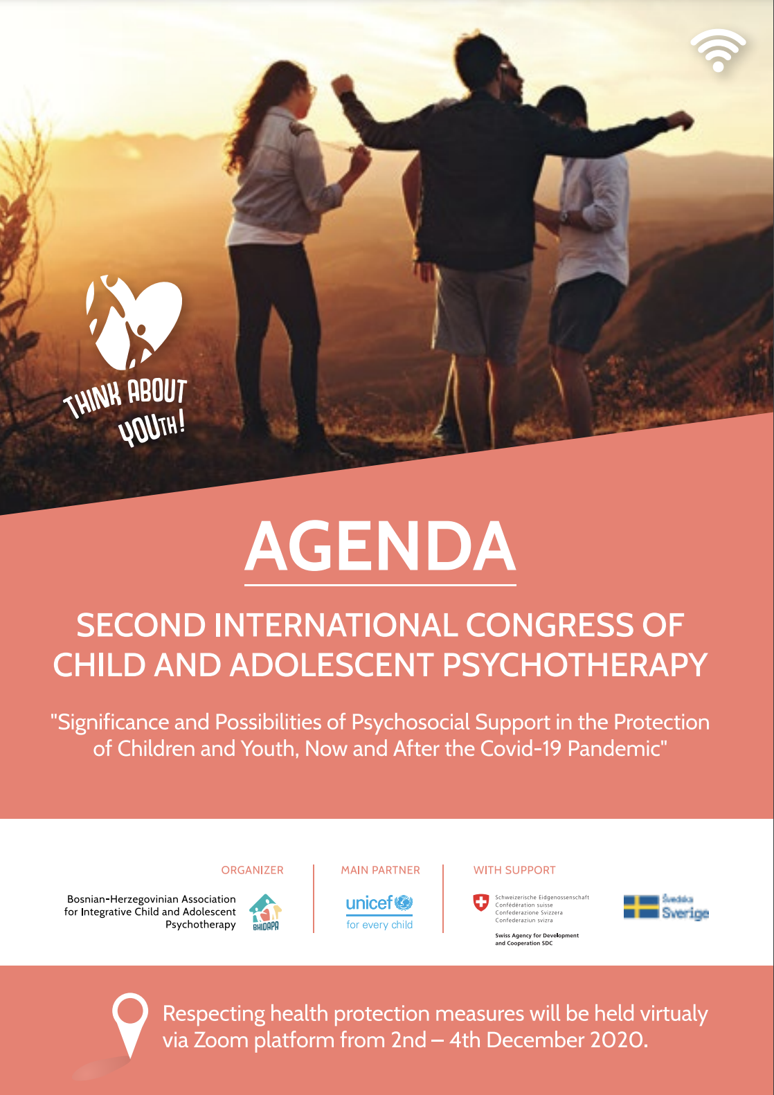 Radosni smo da smo uprkos zahjevnom vremenu organizovali Drugi internacionalni kongres dječije i adolescentne psihoterapije pod nazivom: Značaj i mogućnosti psihosocijalne podrške u zaštiti mentalnog zdravlja djece i mladih, u doba i poslije pandemije Covid-19. Glavni partner Kongresa je UNICEF BiH.