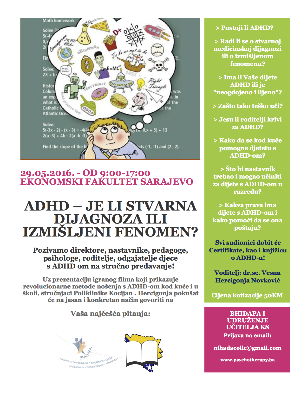 Najava predavanja: ADHD – je li stvarna dijagnoza ili izmišljeni fenomen? – dr. sc. Vesna Hercigonja Novković, psihoterapeut